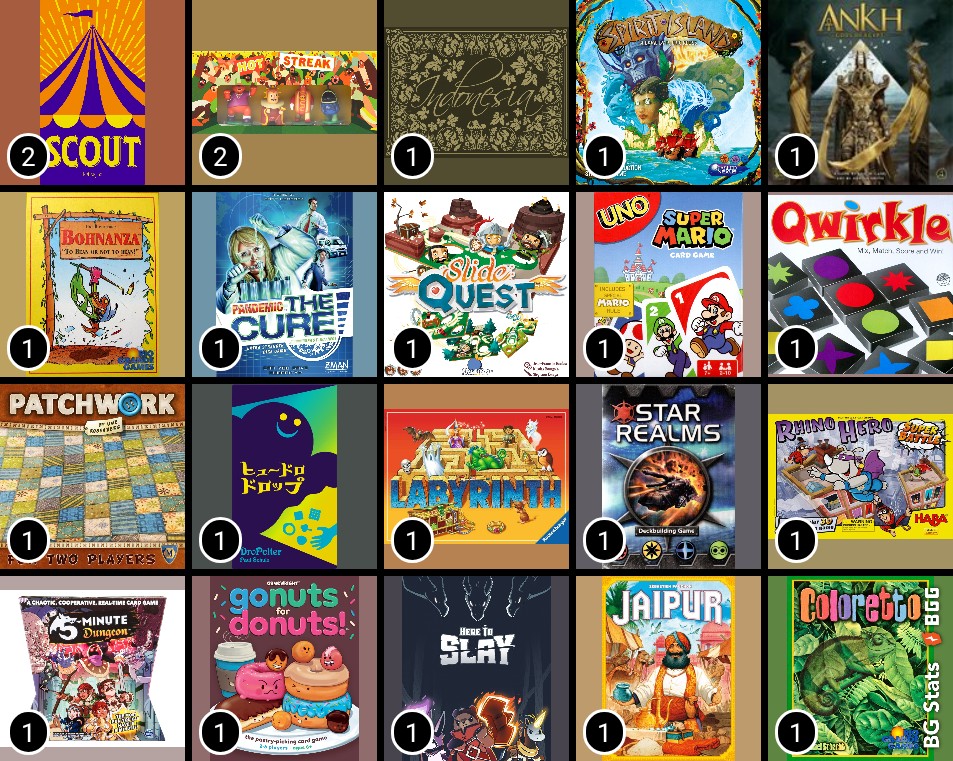 A bunch of other good games. I wanted to point out that when I have people who I haven’t seen for a while and I bring out a game for a game night I have found that I will bring out the same game for the same group, subconsciously, even not remember that I brought out this game like four months ago for the same group (I don’t notice this until I record the game). This was the case of Dro Polter which is still a marvelous little fast game and enjoyed by all.