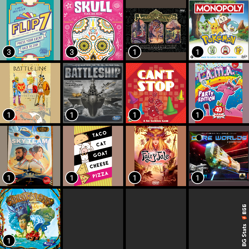 Flip 7: It’s a silly push your luck game. It goes great when you need that silly game that no one is taking seriously but you are all choosing to scream over. It’s fine, I don’t think it revolutionizes the genre but is also a quick and easy take on it. You aren’t getting any amazing decisions or calls to make, there is a little “take that!” thrown in with the action cards to try to catch runaway leaders who get a little too far away. It is inoffensive and pulled into the right situation does exactly what it needs to, lets you play a game without really worrying too much about the game you are playing.